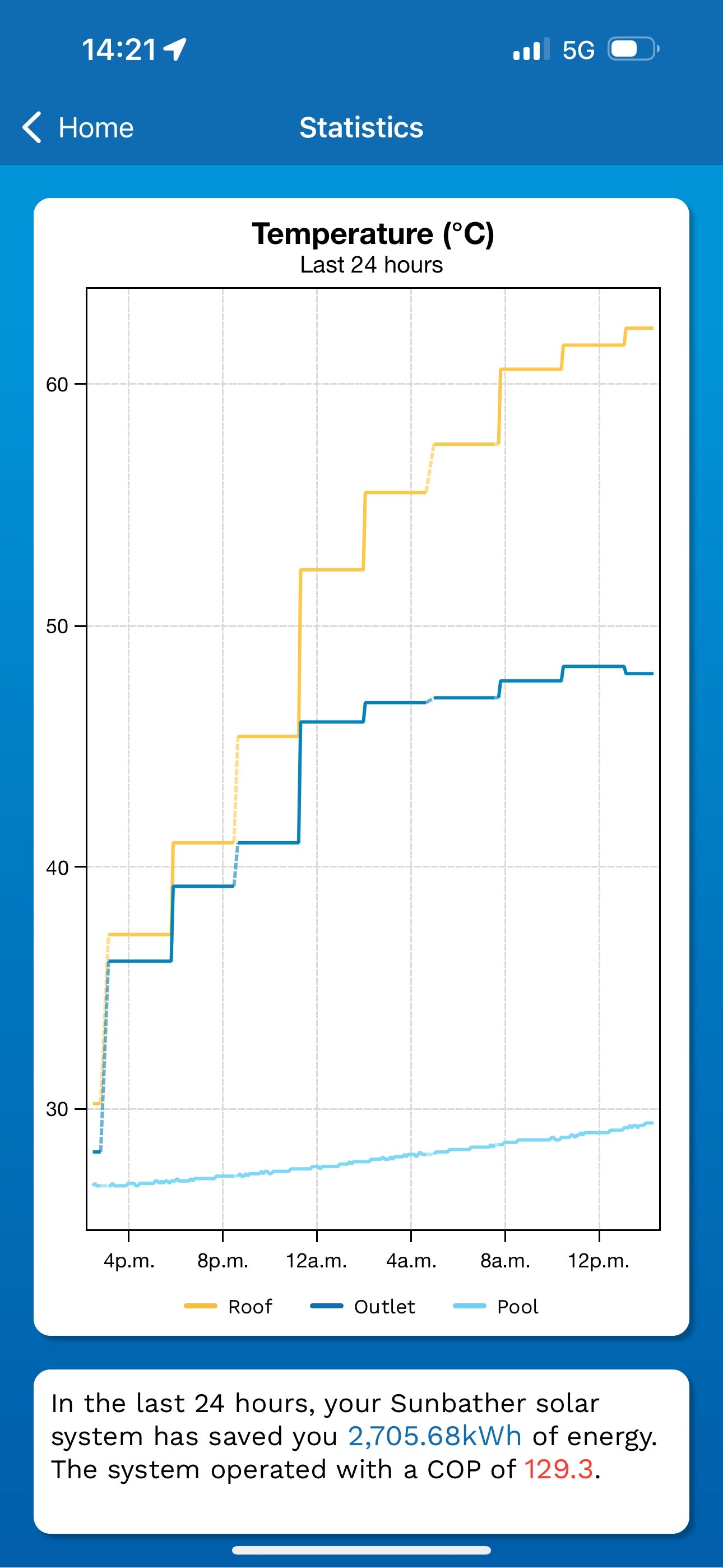 - Paired with the Sunbather app, you can easily control the system at the touch of a button, accessing real-time data on energy savings in kWh and the Coefficient of Performance (COP) based on returning water temperatures.