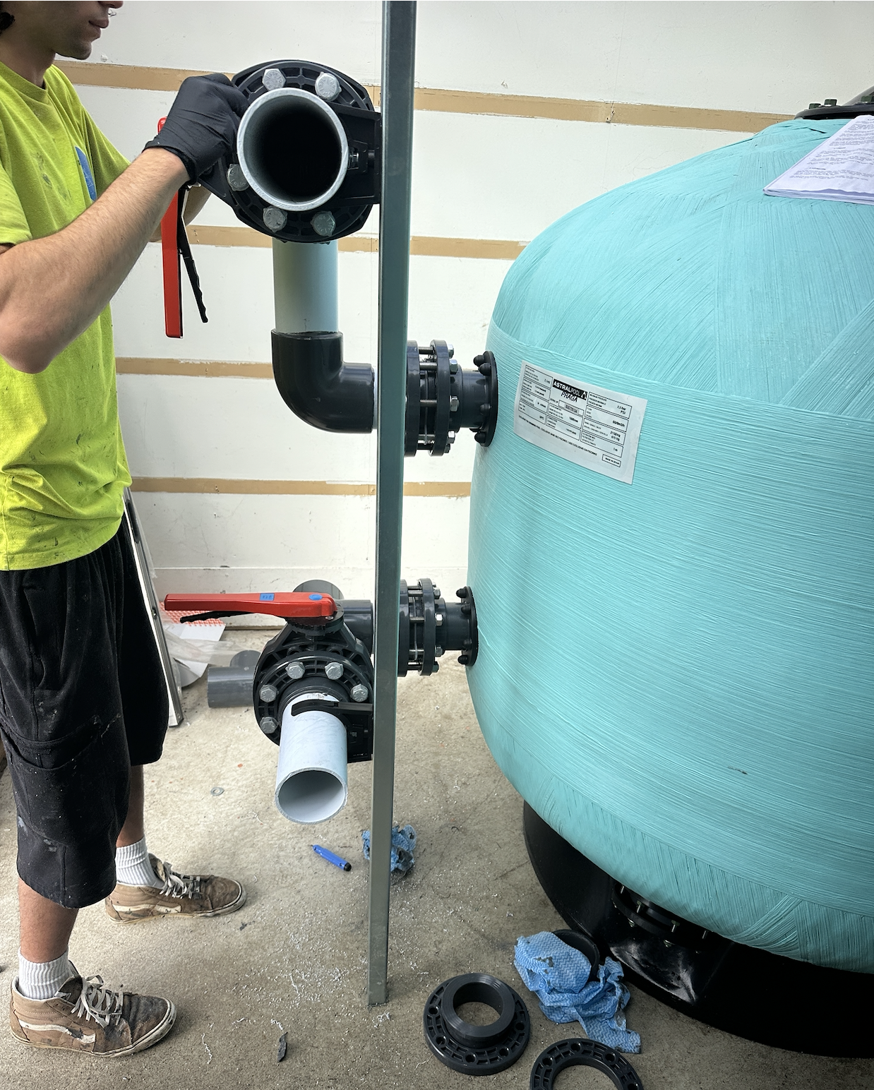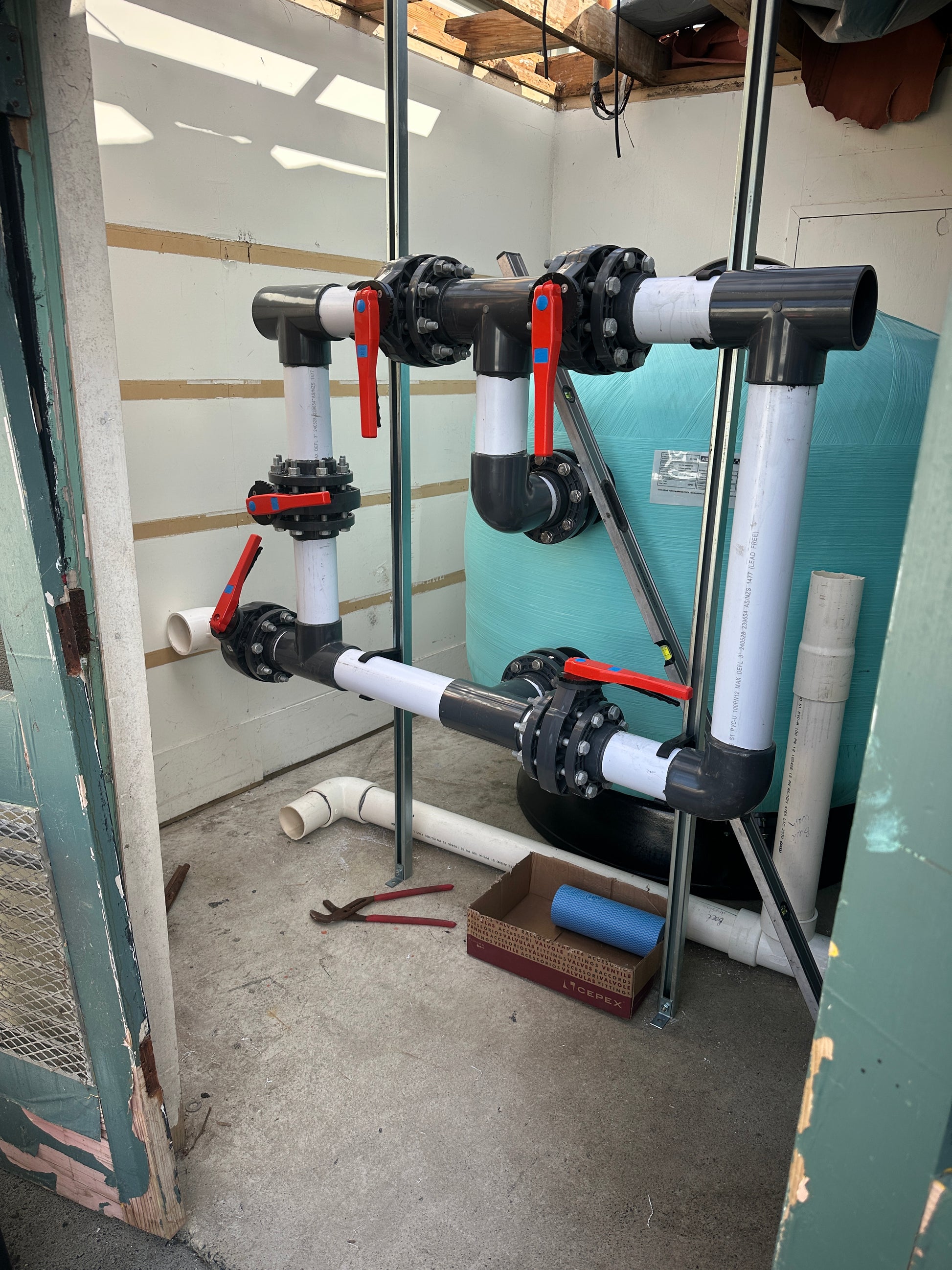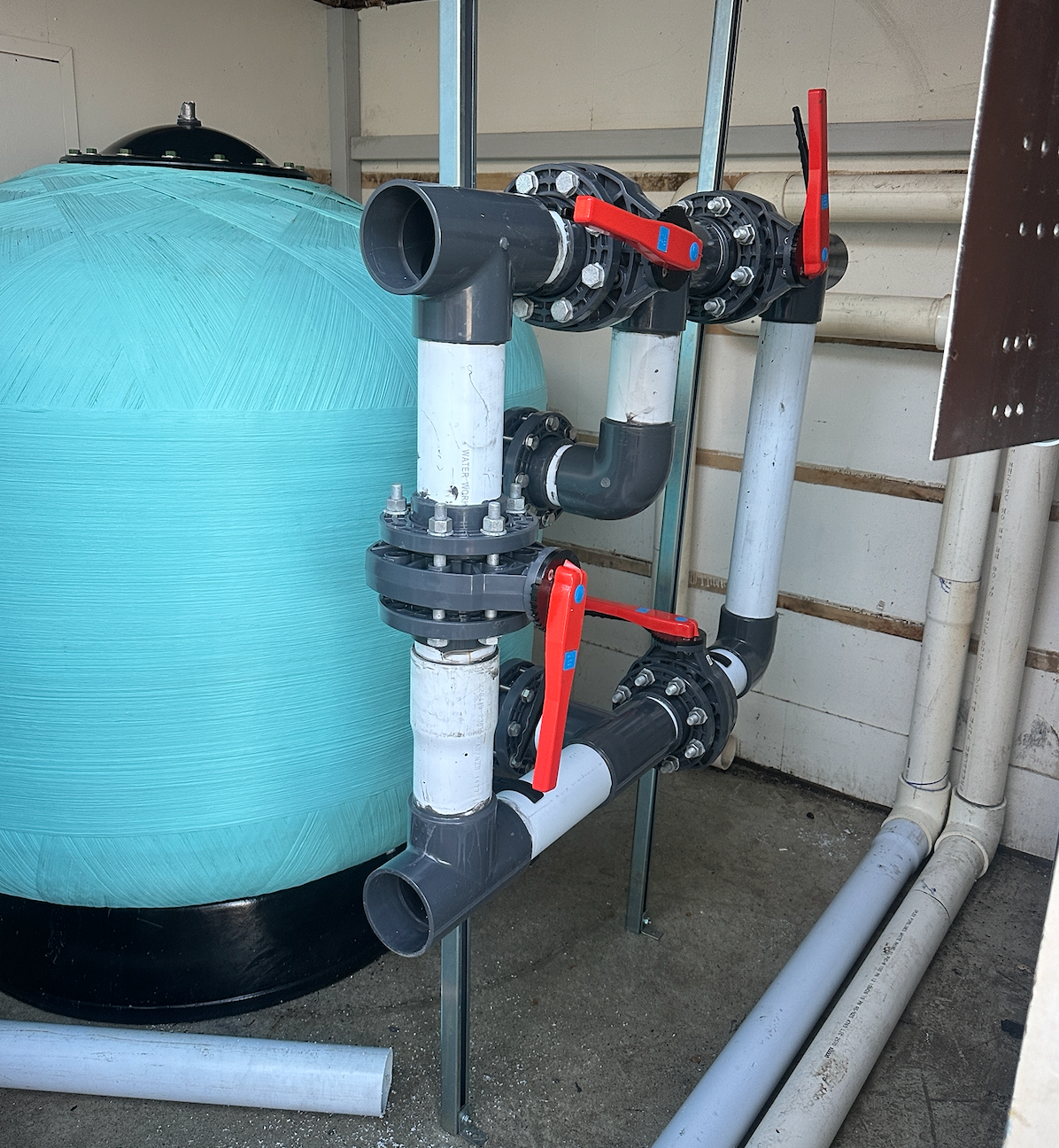 - Battery valves built entirely in PVC/PN-10 with flange connections to filters according to DIN standards. Butterfly and ball valves are in PVC.