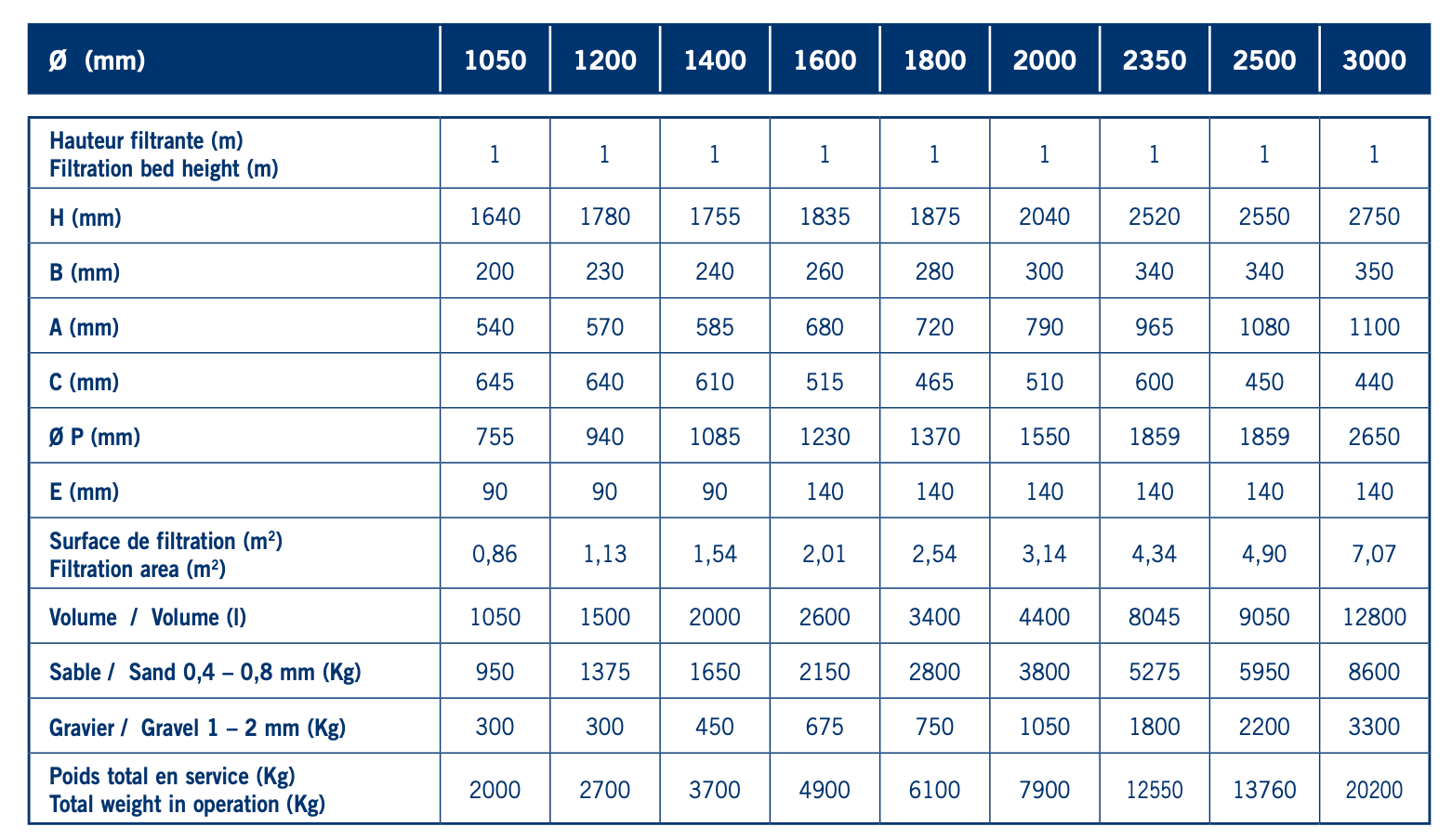 · It contains newly designed larger and more resistant ABS collector arms. · Filter bed height 1m.