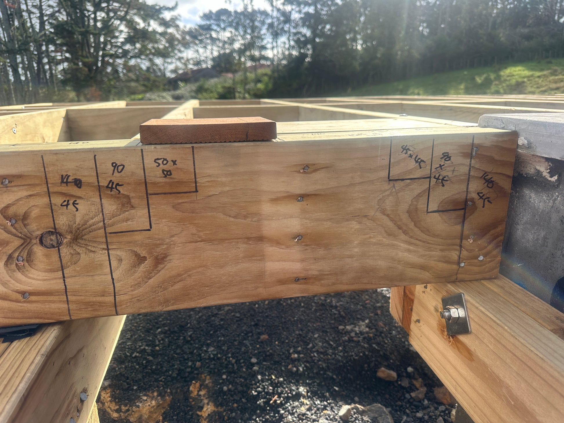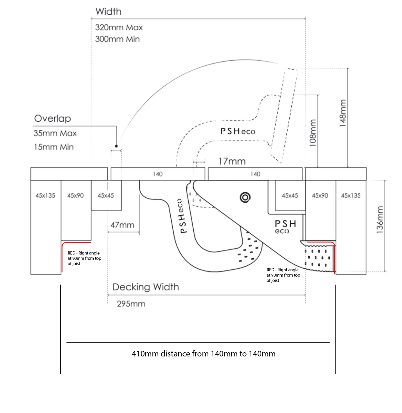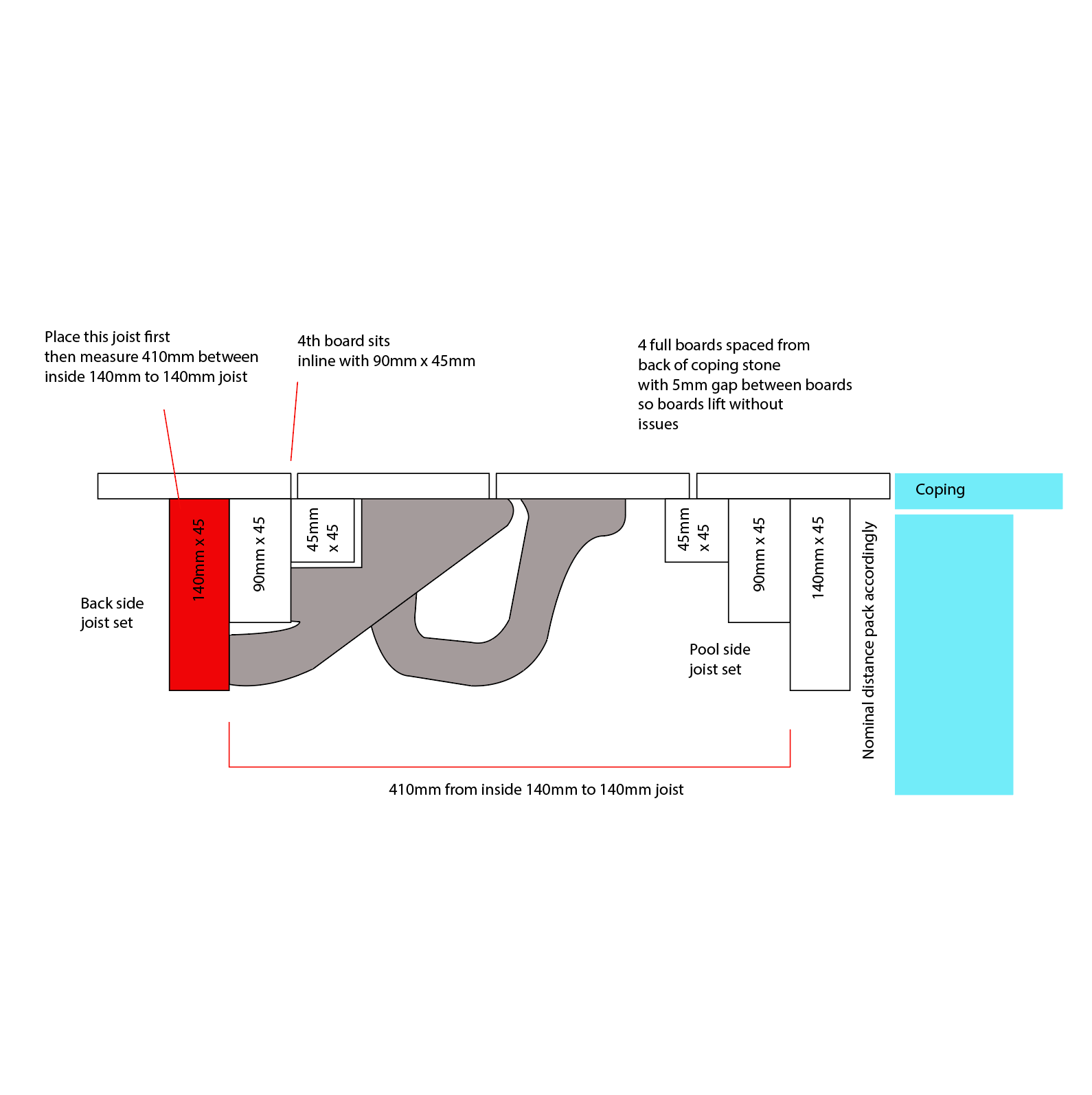 Key details for thinner decking boards i.e. joist internal set out: Change inside joist to inside joist detail as follows