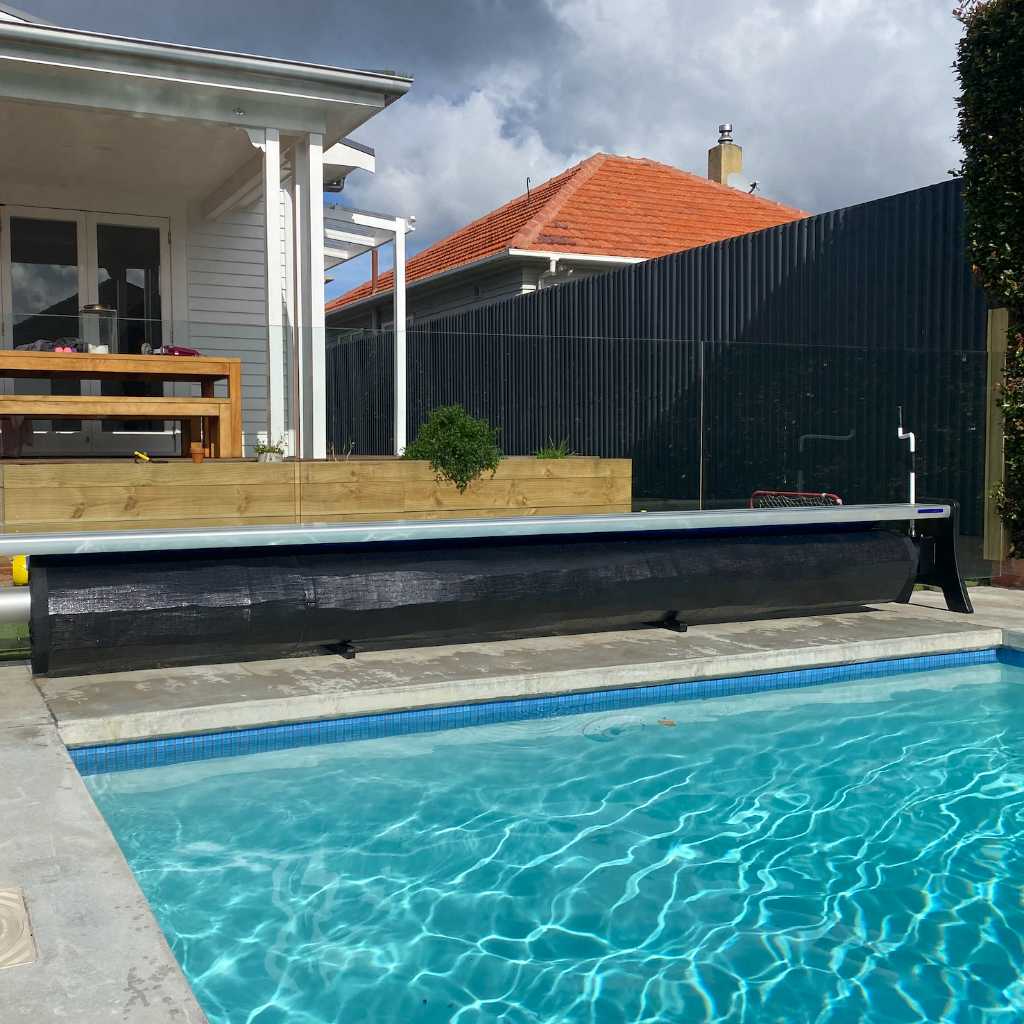 Perfect for those looking to disguise their pool cover while adding extra functionality, the Sunbather 114 GDSR includes a built-in aluminium silver seat at the end of the pool. Operated from a standing position using a metal winder handle, this roller offers both convenience and practicality in one sleek design.