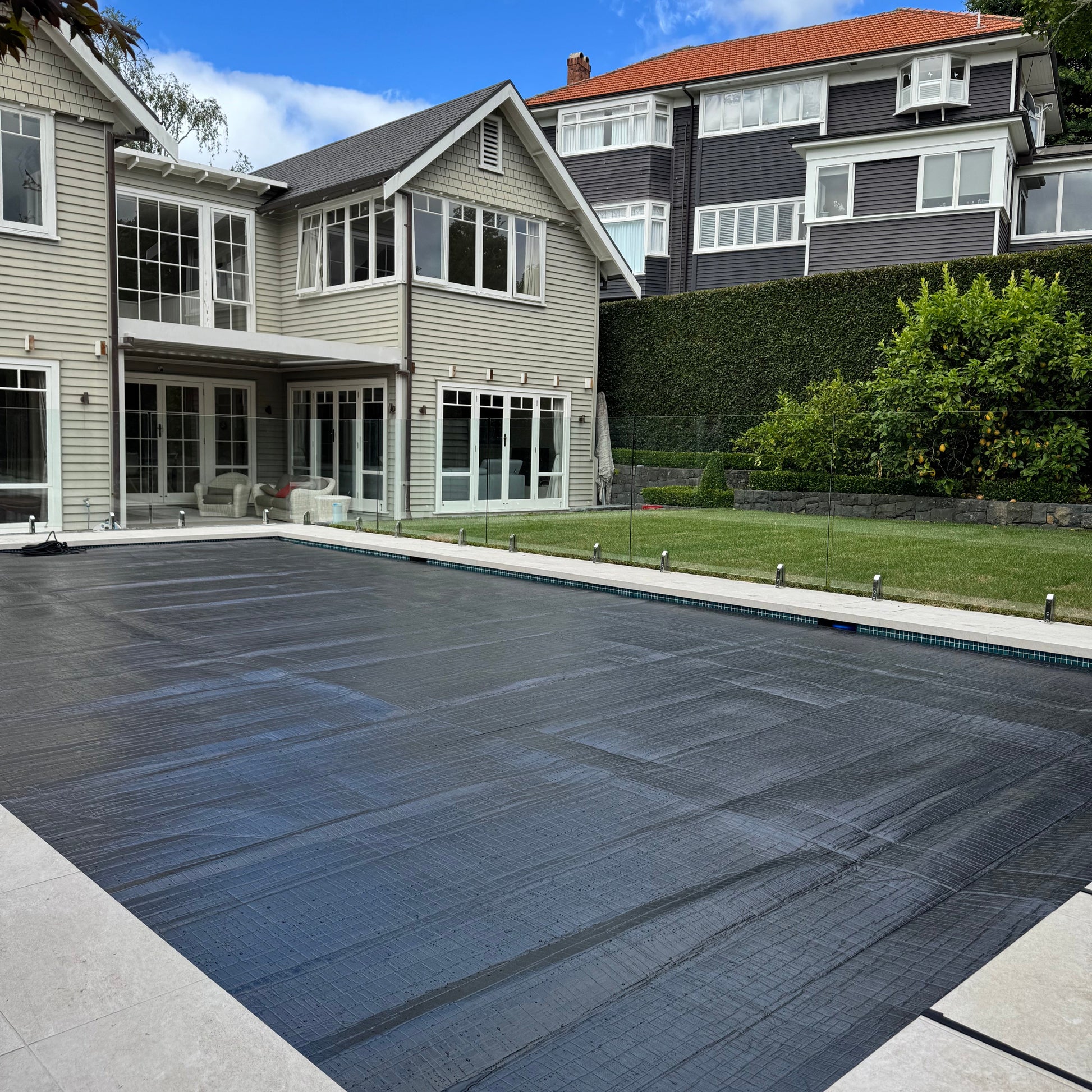 Our material is made with both top and bottom welds on every seam, ensuring strength and durability. We use high quality, multi-layered, foam-based material with a smooth finish to obtain the most efficient, aesthetically pleasing and durable pool cover possible. NO SEWN SEAMS only computer cut and welded seams.